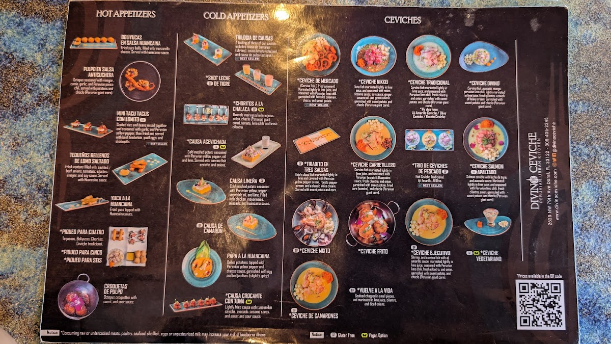 Welcome to Divino Ceviche, an exquisite culinary destination nestled in Doral, Florida. At this vibrant Peruvian eatery, guests are introduced to a menu brimming with fresh, flavorful ceviches and traditional appetizers. Renowned for its authentic ceviche, diners can indulge in a variety of choices, including the standout Ceviche Ejecutivo, showcasing expertly marinated seafood with a zest of Peruvian chili and a garnish of sweet potato and cancha.